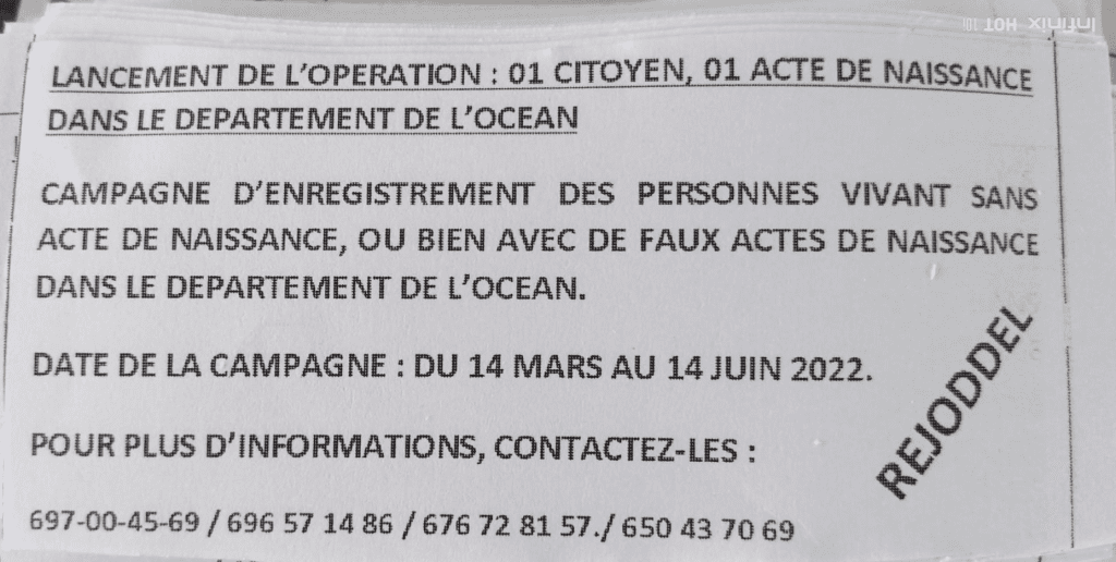 Les intéressés sont priés de passer se faire enregistrer au siège provisoire du Rejoddel sis au carrefour « Bello. »